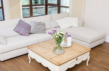 Интерьер дома выполнен в неоклассическом стиле по французским мотивам. На полу , инженерная доска Дуб "Французская елка" под лаком, спец выкрас